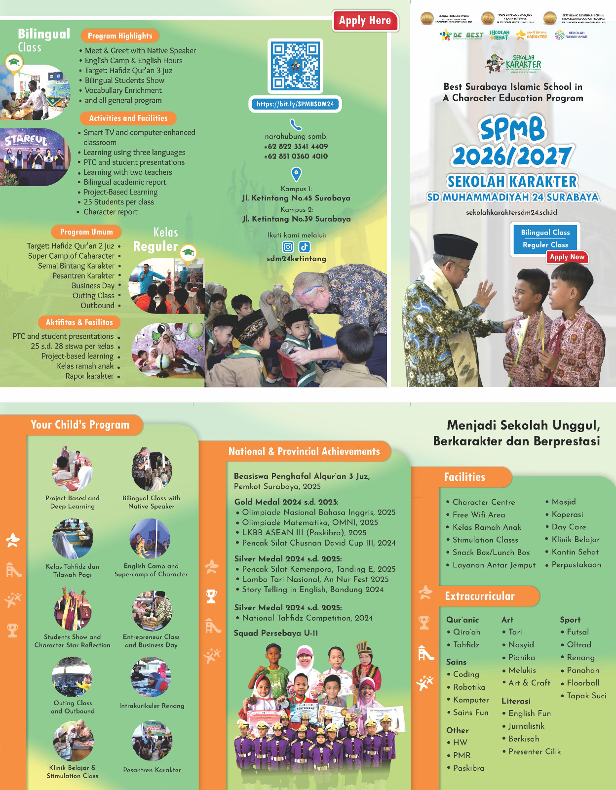 Kelas bilingual didampingi oleh 2 guru dengan program tahfidz 3 juz.